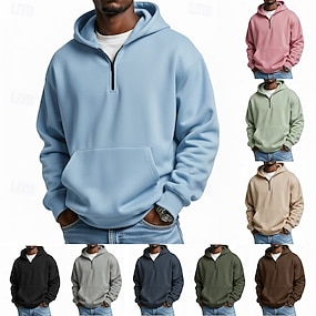 Homme Sweat à capuche Pull Sweat à capuche quart zippé Noir Rose Claire Vert Véronèse Bleu Roi Kaki À capuche Uni Avec Poches Quart de zip Occasionnel Quotidien Sport & Loisir Polyester Streetwear
