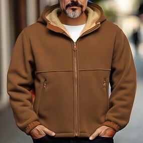 Homme Sweat à capuche zippé intégral Sweat à capuche zippé Sherpa duveteux Veste en Polaire Sweat à capuche en polaire Bleu Marron Vert Kaki À capuche Uni Zip Up Fermeture éclair Avec Poches Sport