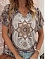 Femmes T-shirt Imprimé Graphique Géométrique Paisley ancien Élégant Classique Manche Courte Col en V Hauts Réguliers Quotidien Week-end Vêtements de vacances Bleu Vin Marron Été Printemps