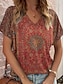 Femmes T-shirt Imprimé Fleuri Graphique Bohème ancien Occasionnel Manche Courte Col en V Hauts Réguliers Quotidien Jaune Rouge Violet Vert Été Printemps
