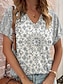 Femmes T-shirt Imprimé Fleuri Graphique Plantes ancien Élégant Occasionnel Manche Courte Col en V Hauts Réguliers Quotidien Bleu Rouge Violet Vert Été Printemps