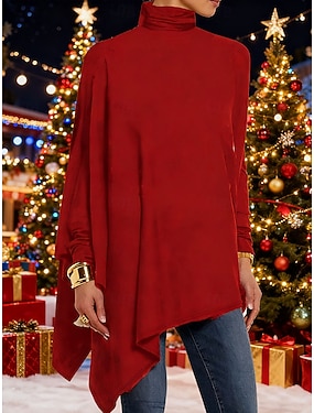 T-Shirt femme Uni Élégant Mode Décontractée Manches longues Col roulé Hauts quotidiens Asymétrique Noir Rouge Bleu Violet Vert Automne Hiver