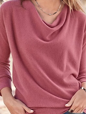 Femmes Chemisier Couleur Unie Élégant Occasionnel manche longue Col ras du cou Hauts Réguliers Quotidien Bleu Noir Blanche Violet Fuchsia Automne Hiver