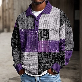 Homme Patchwork Polo Texturé manche longue Polos Revers Occasionnel École Athleisure Tenue quotidienne Impression 3D Printemps Automne Hiver Rouge Violet Vert