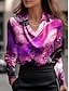 Femmes Chemise Fleuri 3D Quotidien Occasionnel Manche 3/4 Col ras du cou Hauts Réguliers Quotidien Fête Imprimé Violet Été Printemps Automne