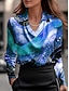 Femmes Chemise 3D Actif Quotidien Élégant manche longue Col de chemise Hauts Réguliers Quotidien Fête Boutons Imprimé Bleu Bleu clair Été Printemps Automne