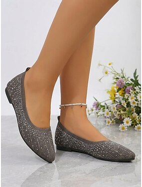 Ballerines en maille marron foncé à strass pour femme, chaussures décontractées légères et respirantes à enfiler, idéales pour le travail, les voyages et les soirées. &confort quotidien