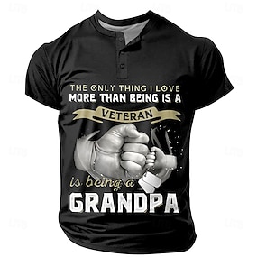 Homme Lettre Geste Être papa n'a pas de prix T-shirt Manche Courte Impression 3D Mode Athleisure Rue Sport en Plein Air Été Printemps Noir Vert Henley T-shirt Henley