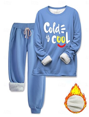Ensemble de vêtements de détente 2 pièces pour femmes Sweatshirt et Joggers Décontracté Froid Imprimé Phrase avec Doublure en polaire Confortable Ajustement Hiver