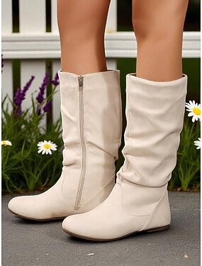 Bottes plates mi-mollet roses pour femmes avec fermeture éclair latérale, bottes décontractées pour les journées d'automne, les maisons de campagne et les courses en plein air