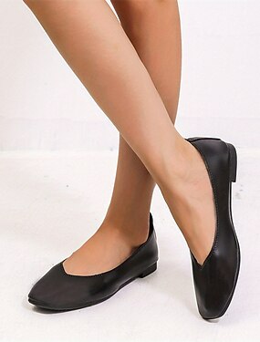 ballerines noires pour femmes – chaussures à enfiler en similicuir souple pour le travail, les loisirs et le quotidien