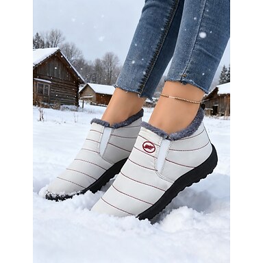 Bottines d'hiver blanches pour femmes - chaussures de neige imperméables doublées de fausse fourrure, chaussures d'extérieur chaudes et légères pour les tenues d'hiver quotidiennes