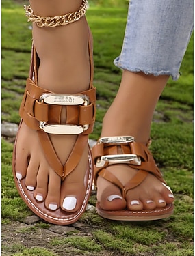 sandales décontractées marron pour femmes - simples et confortables avec boucle d'orteil et accent doré, idéales pour les activités de plein air et les journées à la plage