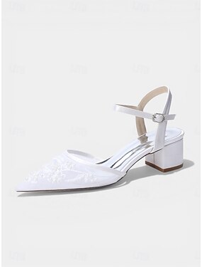Femmes Chaussures de Mariage Grande Taille Chaussures de Mariée Talon plat Talon à bride arrière Bout Pointu Minimalisme Satin Boucle Blanche Ivoire Argent