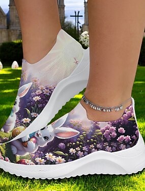 Baskets à enfiler imprimées de lapin de Pâques – chaussures de marche légères et respirantes pour femmes, jolies chaussures de vacances