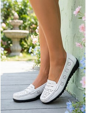 Mocassins en cuir synthétique doux pour femmes avec design découpé respirant chaussures plates légères pour femmes marche décontractée travail voyages et usage quotidien
