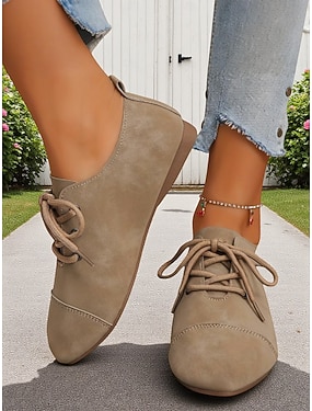 Chaussures à lacets pour femmes, coupe large – Chaussures de marche confortables et décontractées en similicuir pour un usage quotidien et en voyage