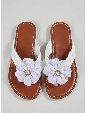 Tongs blanches élégantes à fleurs pour femmes - sandales confortables à brides tressées ornées de fleurs en 3D, idéales pour les croisières de luxe et les fêtes sur yacht. &lunes de miel insulaires