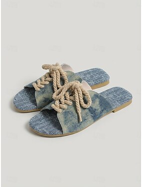 Sandales à enfiler en denim bleu pour femmes – chaussures bohèmes à lacets et bout ouvert, idéales pour la plage, les voyages et les tenues décontractées en été