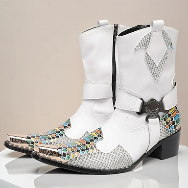 Homme Bottes Bottes de motard Rétro Marche Cuir Daim Cuir de vache pleine fleur italien Confortable Antidérapant Chaud Bottes Mi-Mollet Mocassin Boucle Blanche Automne Hiver