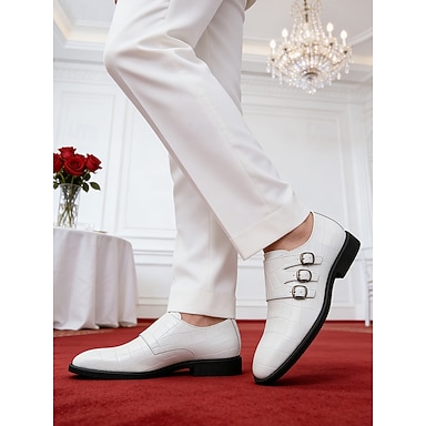 Mocassins de mariage blancs pour hommes en similicuir, au design moderne, chaussures élégantes et habillées pour le marié et les invités.