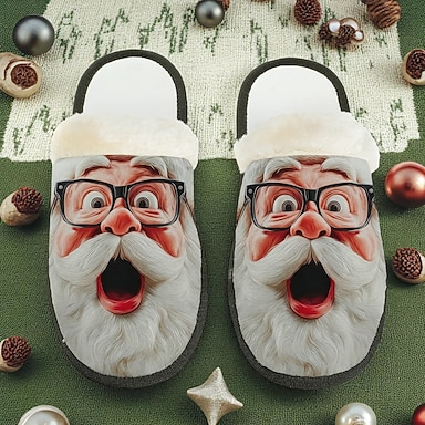 Pantoufles Père Noël pour hommes - chaussures de Noël amusantes avec un visage de Père Noël en 3D, doublure en peluche douce, idéales pour se détendre pendant les fêtes et les festivités hivernales.