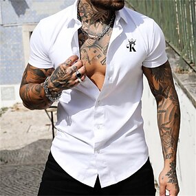 Homme Chemise Chemisette Chemise d'été Chemise boutonnée Blanche Rose Claire Bleu Vert Manche Courte Lettre Col rabattu Plein Air Casual Bouton bas Vêtement Tenue Mode Décontractées Confortable