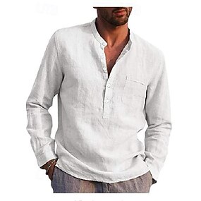 Homme Chemise en lin Chemise popover Chemise Décontractée Chemise de Plage Chemise à col officier Uni Occasionnel Vêtements de rue Noir Blanche Rose dragée Bleu Ciel manche longue Henley Printemps