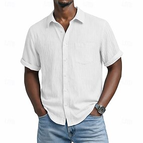 Homme Chemise Tricot côtelé Texture Chemise Décontractée Chemise Boutonnée Noir Blanche Vert Claire Rouge Bordeaux Bleu Roi Manche Courte Uni Col de chemise Occasionnel Quotidien Poche Avant Vêtement
