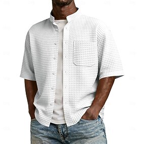 Homme Chemise Chemise gaufrée Chemise Décontractée Chemise Boutonnée Noir Blanche Vert Claire Rose Claire Rouge Bordeaux Manche Courte Uni Col grand-père Occasionnel Quotidien Poche Avant Vêtement