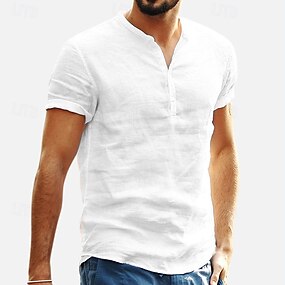 Homme Chemise en lin Chemise d'été Tenue de plage Chemise Décontractée Chemise à col officier Couleur Unie Occasionnel Quotidien Noir Blanche Vert Claire Bleu Manche Courte Henley Été Printemps