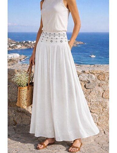 Femmes Jupe en dentelle Mode Occasionnel Boho Maxi Taille haute Jupes Couleur Unie Dentelle Patchwork Micro-Élastique Quotidien Date Blanche Été Coton