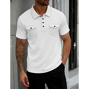 Homme Polo Chemise de golf Occasionnel Fête Col Polo Côtelé Manche Courte Mode Basique Uni Avec Poches Classique Été Coupe régulière Bleu marine Noir Blanche Rouge foncé Grise Bleu clair Polo