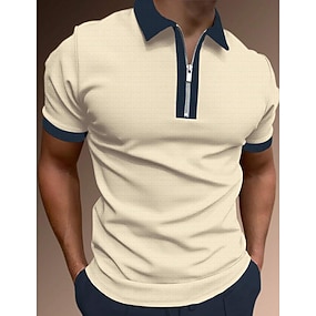 Homme Polo zippé POLO Casual Vacances Revers Quarter Zip Manche Courte Mode basique Plein Quarter Zip Eté Standard Noir Blanche Rose Claire Rouge Marron Gris foncé Polo zippé