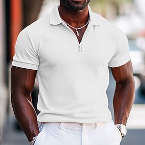 Homme Polo à fermeture éclair Texturé Occasionnel Fête Revers Zip quart Manche Courte Mode Basique Uni Quart de zip Été Printemps Coupe Slim Bleu Noir Blanche Kaki Gris Polo à fermeture éclair