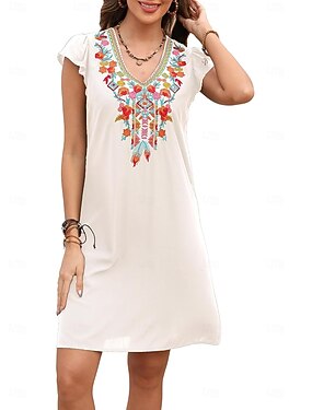 Femmes Mini Robe Robe bohème Robe Vintage Robe Décontractée Élégant Mode Moderne Extérieur Vacances Sortir Coupe régulière Fleuri Manche Courte Col en V Blanche Vert Bleu clair Été Printemps