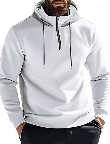 Homme Sweat à capuche Sweat à capuche quart zippé Abricot Noir Blanche Vin Rouge À capuche Uni Cordon de serrage Sport & Loisir Quotidien Fête Polyester Streetwear Basique Occasionnel Printemps
