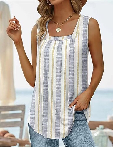 Femmes Chemise T-shirt Patchwork Imprimé Couleur Unie Fleuri Graphique Élégant Classique Moderne Sans manches Col en U Hauts Réguliers Quotidien Sortir Week-end Noir Blanche Rouge Bleu Ciel Bleu