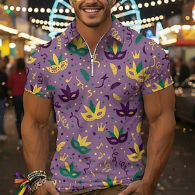 Homme Polo Polo quart de zip Quotidien Carnaval Zip quart Manche Courte Mode Basique Graphique Masque Impression 3D Été Printemps Coupe sur mesure Violet foncé Doré Violet Polo