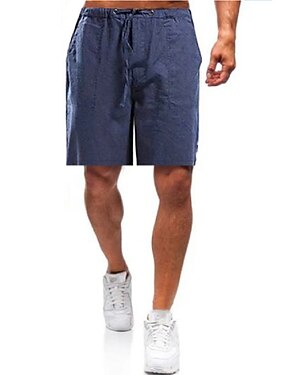 Homme Shorts Shorts en Lin Shorts d'été Shorts de plage Cordon de serrage Taille Élastique Couleur Pleine Confort Respirant Longueur Genou Quotidien Extérieur Fête Mode Occasionnel Bleu Noir Non