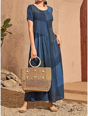 Femmes Robe maxi Faux coton lin Robe bohème Robe Décontractée ancien Mode Moderne Extérieur Vacances Sortir Coupe régulière Géométrique Manche Courte Col ras du cou Bleu Rouge Rouge Bordeaux Violet