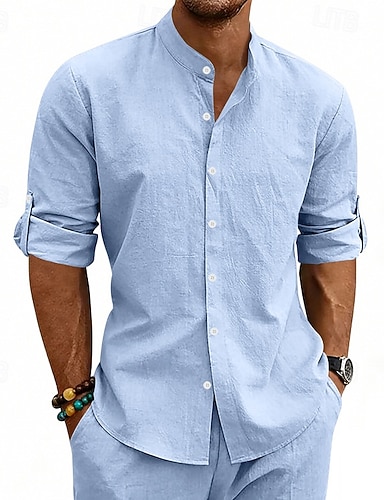 Homme Chemise Chemise en lin Chemise d'été Chemise Décontractée Chemise Boutonnée Uni Occasionnel Quotidien Bleu Noir Blanche Rose Claire manche longue Band Collar Été Printemps Vêtement Tenue