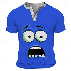 Homme Dessin animé Visage humain T-shirt Chemise Henley Manche Courte Designer Rétro Vintage Occasionnel Occasionnel Quotidien Rue Été Printemps Bleu Jaune Vert Henley T-shirt Henley