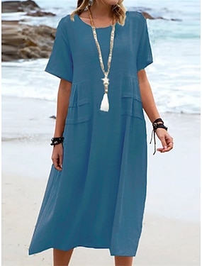 Femmes Robe Midi Coton mélangé Robe fourreau Robes en coton et lin Robe Décontractée Classique Moderne Quotidien Week-end Coupe régulière Uni Manche Courte Col ras du cou Bleu Noir Jaune Rose Claire