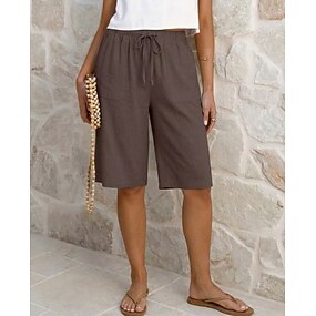 Femmes Shorts Shorts d'été Bermuda Shorts de plage Vacances Mode Occasionnel Longueur Genou Taille haute Uni Cordon de serrage Avec Poches Confort Doux Respirant Micro-Élastique Plage Voyage Fête