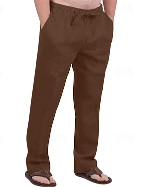 Homme Pantalons en Lin Pantalons Pantalon d'été Pantalons Amples Avec Poches Taille Élastique Jambe Droite Couleur Unie Confort Confortable Longueur complète Occasionnel Quotidien Fête Vacances Mode