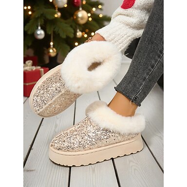Bottes de neige roses à paillettes pour femmes avec col en fausse fourrure – bottines d'hiver tendance et scintillantes pour un confort décontracté