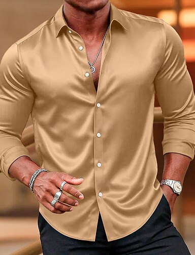 Homme Chemise Chemise en satin Chemise habillée Chemise Décontractée Chemise Boutonnée Chemise de Bal Uni Formel Mariage Bleu Ciel Noir Blanche Vin manche longue Revers Toutes saisons Vêtement Tenue