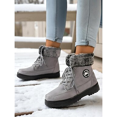 Femmes Bottes Bottes de Neige Extérieur Quotidien Couleur Unie Doublure Polaire Bottines Talon plat Bout Rond Occasionnel Faux daim À lacets Noir Rouge Bleu