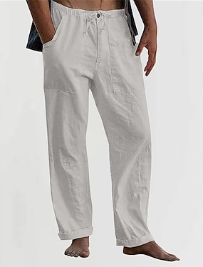 Homme Pantalons en Lin Pantalons Pantalon d'été Pantalons Amples Pantalons de Plage Avec Poches Jambe Droite Couleur Unie Confort Respirant Longueur complète Occasionnel Quotidien Extérieur Vacances